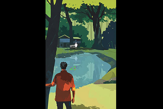 বিশাল এই গেস্টহাউস। পেছনে ঘন গজারি বন। চারদিকে গাছপালা। সূর্য ডোবার আগেই অন্ধকার নেমে আসছে। আমি ঘর থেকে বের হলাম। মাঠটা ধরে হাঁটতে হাঁটতে এসে পৌঁছালাম একটা পুকুরের পাড়ে। সেখানে দেখি একজন চাদর-গা মানুষ বসে আছে! ভয় যে পাইনি, তা বলব না। ভূতের ভয় নয়। মানুষের ভয়। এই নির্জন গেস্টহাউসে রতন ছাড়া আর কোনো মানুষ থাকার কথা নয়!
