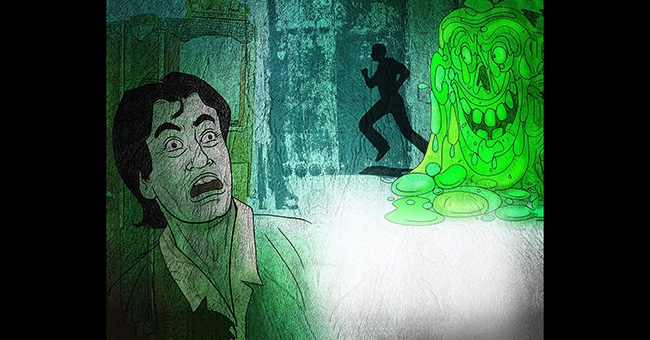 তারপর সেই রক্ত হিম করা বিকট, ভৌতিক খলখলে গলার হাসি ছড়িয়ে পড়ল ঘরে। দরজার ফাঁক দিয়ে ঢুকতে লাগল আকৃতিহীন সবুজ, তুলতুলে একটা বস্তু। গলে গলে পড়ছে ঘরে।